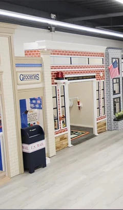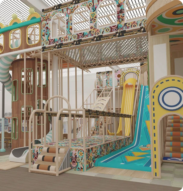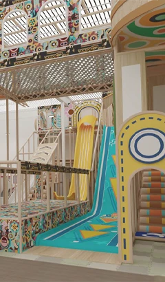 This area is set within a separate gated zone, allowing parents and toddlers to roam freely in a safe and focused environment. The toddler-sized playhouses are perfectly scaled for little ones to explore, while adults can comfortably supervise nearby. Our toddler area is thoughtfully crafted to inspire creativity while offering a secure space for early learners to build confidence through imaginative play.