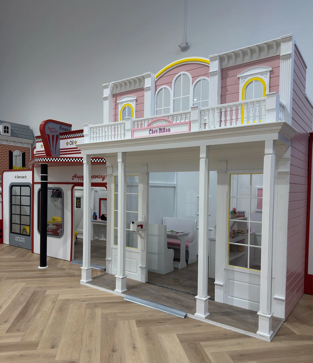 Step into a world of imagination! Our interactive custom-built playhouses are designed to spark creativity and encourage role-playing adventures. From miniature cafés to tiny fire stations, each playhouse offers a themed experience where kids can pretend, explore, and engage in social play.